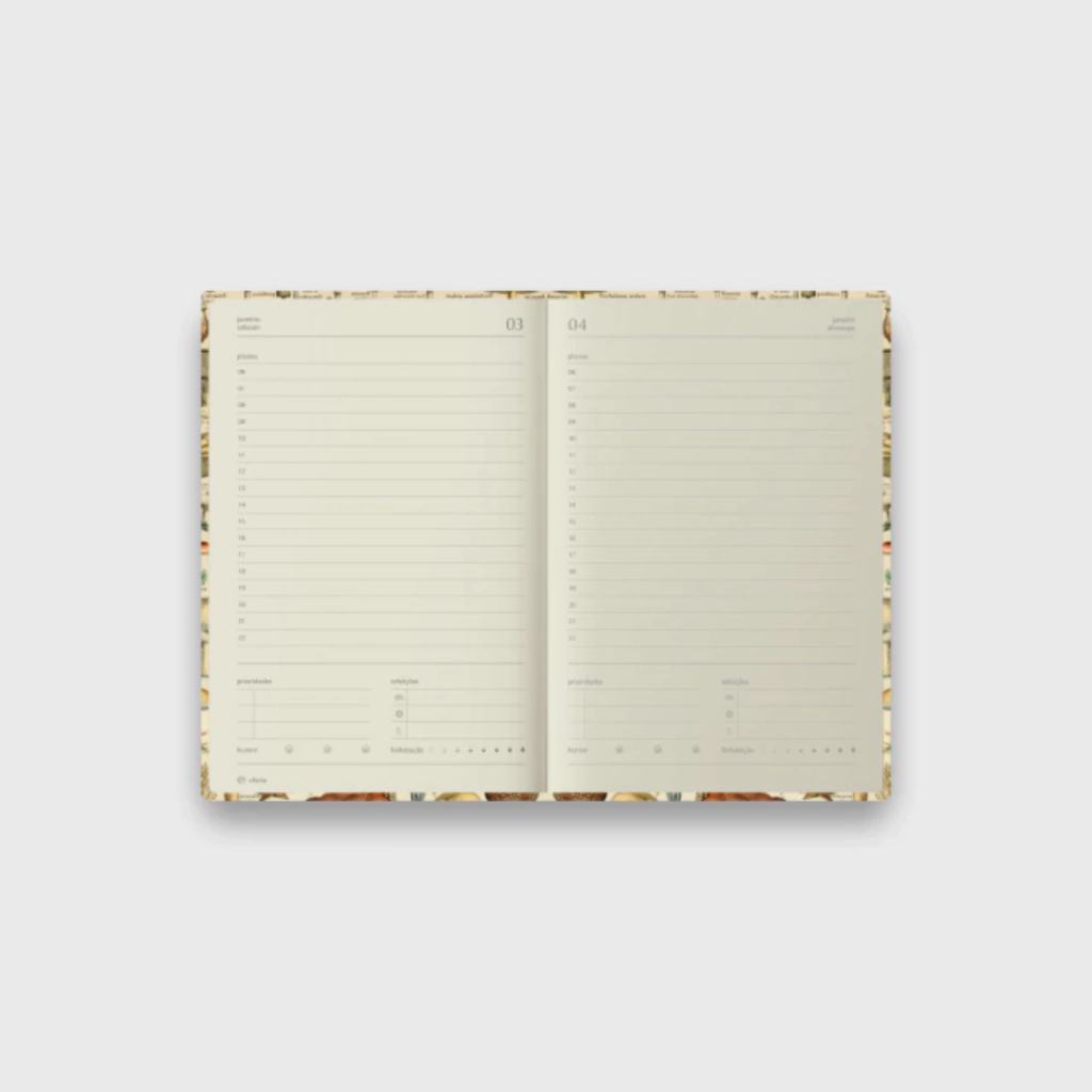 Com visão anual, mensal e diária, a agenda conta com divisão horária completa (das 06h às 22h), permitindo visualizar cada compromisso com clareza. Além disso, inclui recursos exclusivos para apoiar suas metas pessoais e profissionais, como checklists, registros de humor e hidratação, planejamento financeiro e acompanhamento de prioridades.