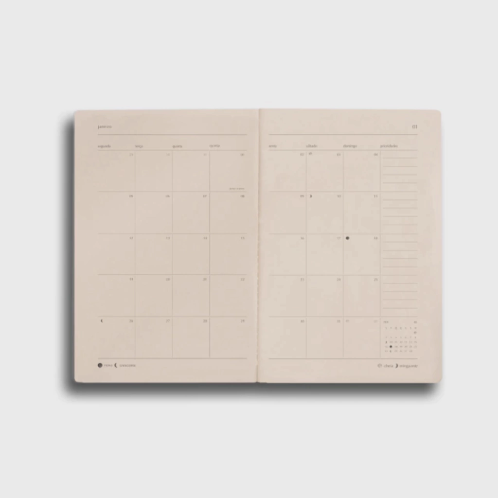A Agenda Midori Folk Essentials 2026 combina praticidade e organização em um formato completo. Com planejamento anual, mensal e semanal para todo o ano, checklist de metas, divisórias com objetivos e espaço para finanças, ela oferece tudo o que você precisa para organizar sua rotina.