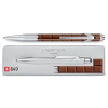 A 849™ Caran d’Ache + Nespresso Edição Especial, um novo ícone com um visual monocromático e metálico, nasce do sucesso de nossas colaborações anteriores com a Nespresso. Esta 6ª edição é impulsionada por uma visão compartilhada de um mundo em que design, sustentabilidade e cor se unem para criar produtos únicos e responsáveis. Feita com o alumínio de cápsulas Nespresso recicladas, a caneta esferográfica 849™ Caran d’Ache + Nespresso se inspira no mundo da cápsula Kazaar. O azul meia-noite do corpo, clipe e botão da caneta destaca a expertise em cores da Caran d’Ache.