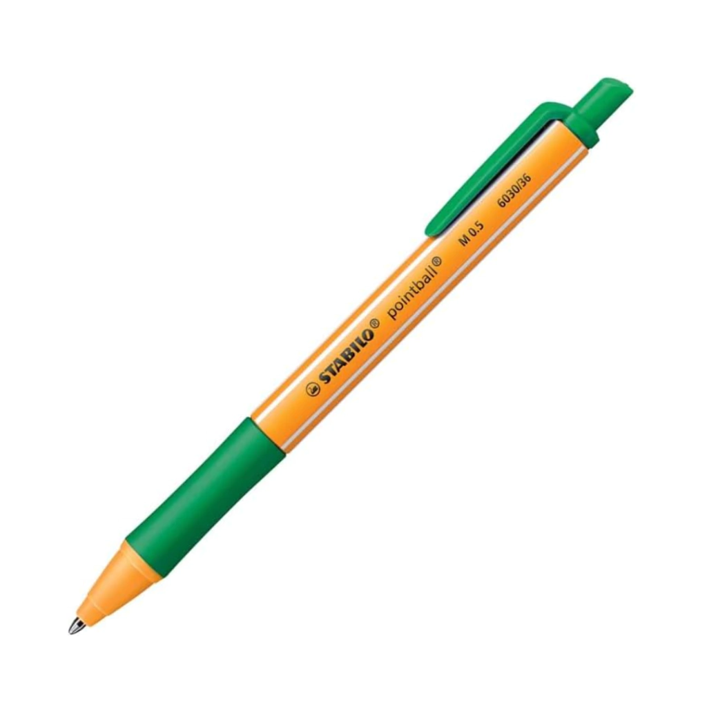 O estojo STABILO Pointball vem com 4 canetas esferográficas retráteis nas cores Azul, Preto, Vermelho e Verde — ideais para estudantes, profissionais e amantes da escrita organizada e colorida.
