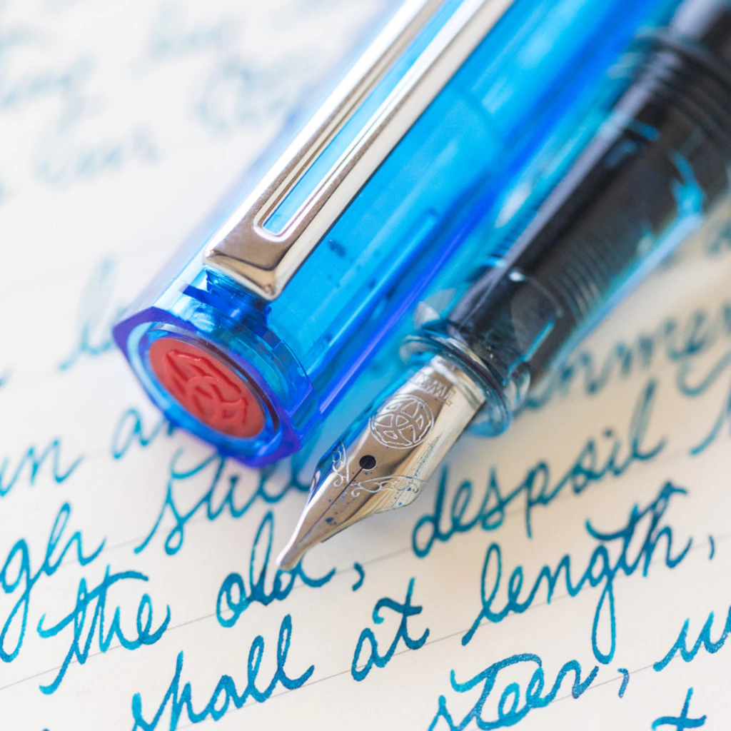 Descubra a TWSBI ECO, uma caneta tinteiro que oferece um valor excepcional com seu sistema de enchimento por pistão. Assim como outras canetas TWSBI, ela possui um corpo em acrílico cristalino que permite visualizar o nível de tinta, complementado por uma tampa e um êmbolo translúcidos em um elegante tom de azul.