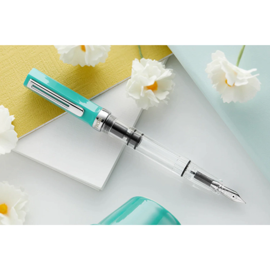 As canetas tinteiro TWSBI são reconhecidas pela alta qualidade e mecanismos de enchimento avançados, normalmente encontrados em modelos muito mais caros. A ECO apresenta um corpo elegante e transparente e uma tampa hexagonal rosqueável que pode ser encaixada firmemente na extremidade da caneta. O sistema de enchimento por pistão é simples de operar: gire o botão na extremidade do corpo no sentido anti-horário para estender o pistão, mergulhe a pena na tinta e, em seguida, gire o botão no sentido horário para retrair o pistão, puxando a tinta diretamente do frasco.