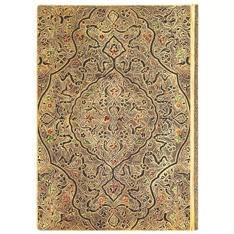 O design de capa Zahra de Arte Árabe remonta ao século XVII, quando a luxuosa vida cortesã árabe ajudou a inspirar uma estética de design supremamente refinada. A encadernação original é emblemática de uma era em que os livros eram grandes investimentos, utilizados como doações valiosas, presentes preciosos para chefes de estado e símbolos de status.