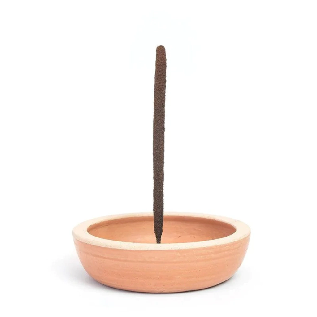 Cada peça é confeccionada à mão por artesãos no interior do Tocantins, utilizando apenas matérias-primas naturais. As duas cores que adornam o incensário são o resultado da união de diferentes tipos de barro, sem qualquer aditivo químico ou pigmento artificial. É um objeto 100% natural, que traz consigo as histórias e a beleza do saber artesanal brasileiro.