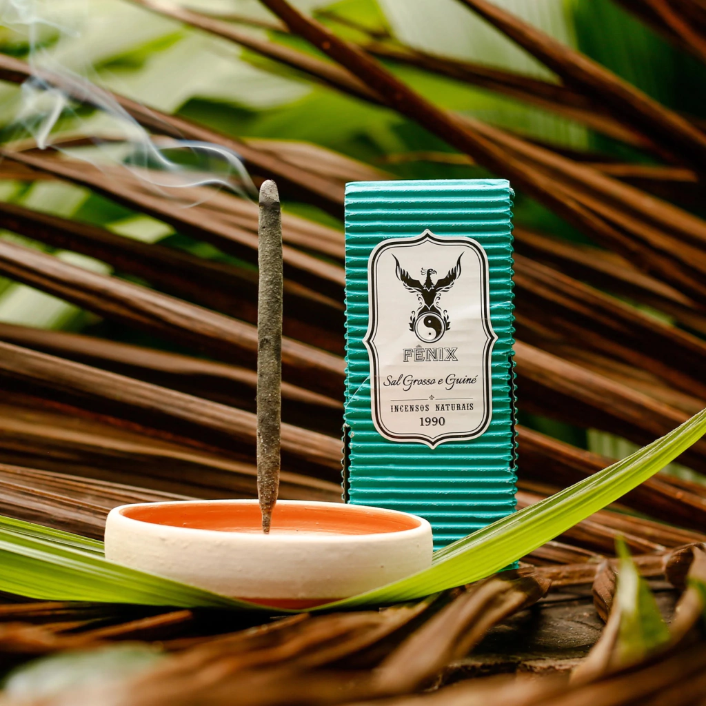 A união de duas das mais poderosas ferramentas de limpeza da tradição brasileira. Este incenso exclusivo da Fênix combina a ação do Sal Grosso, conhecido por descarregar energias de baixa vibração, com o poder da Guiné, uma erva ancestral que corta demandas e cria um forte campo de proteção. É a escolha ideal para uma purificação profunda e eficaz do seu ambiente e da sua energia pessoal. Use-o em seus rituais, para harmonizar a casa ou sempre que sentir a necessidade de zerar as energias e se sentir protegido.