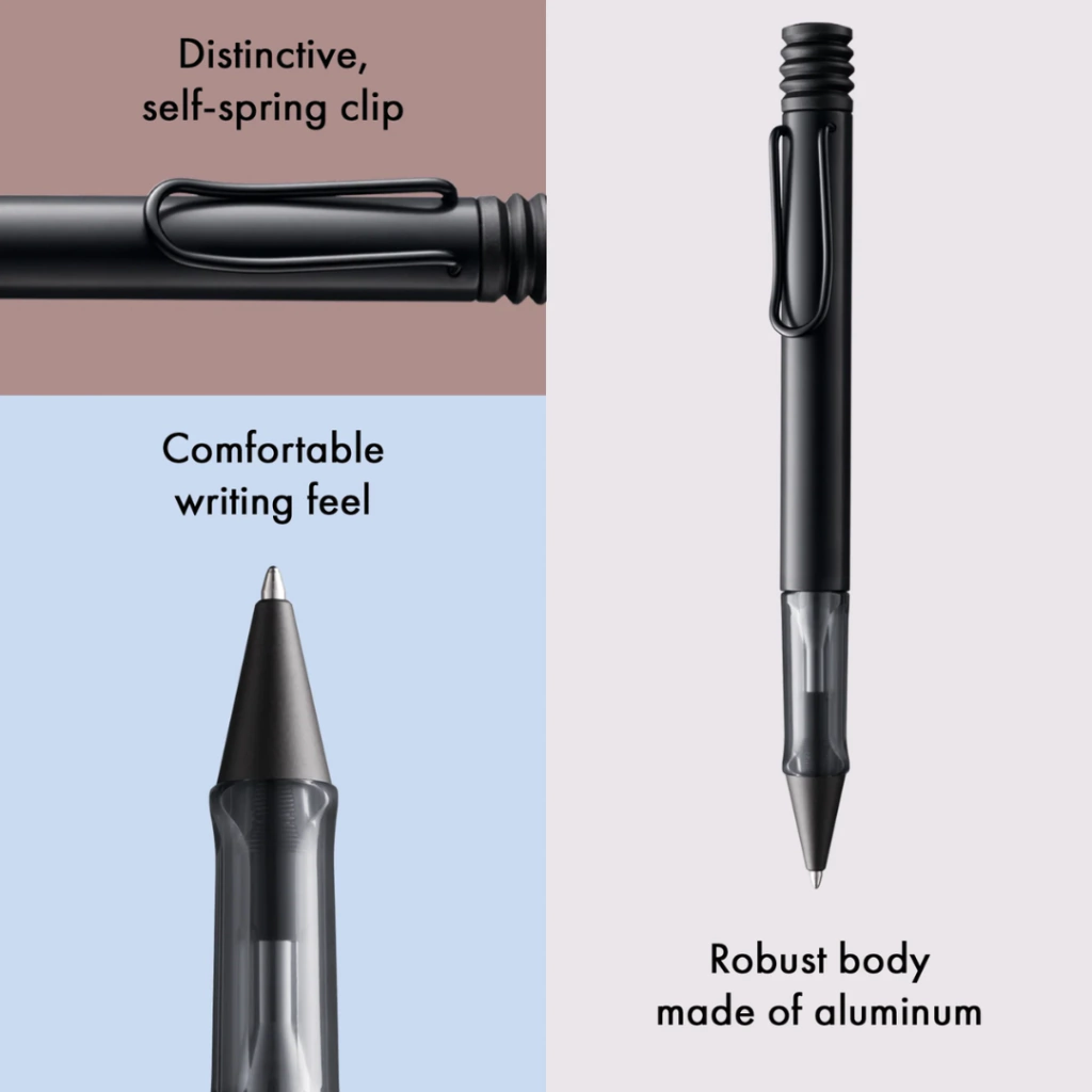 A linha al-star representa o passo seguinte na evolução do design LAMY, oferecendo a mesma funcionalidade e ergonomia da safari em um corpo de alumínio premium que proporciona maior peso e presença.