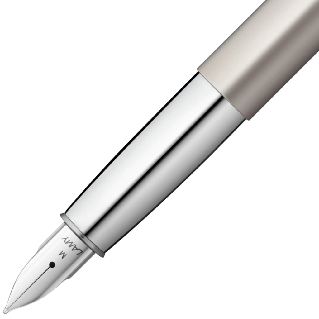 A Lamy Ideos combina sofisticação contemporânea e engenharia de precisão em uma caneta tinteiro de alto padrão. Criada pelo estúdio austríaco EOOS, apresenta um corpo metálico com acabamento em paládio polido, marcado pela fusão distinta de formas ovais e triangulares que garantem ergonomia e presença visual.