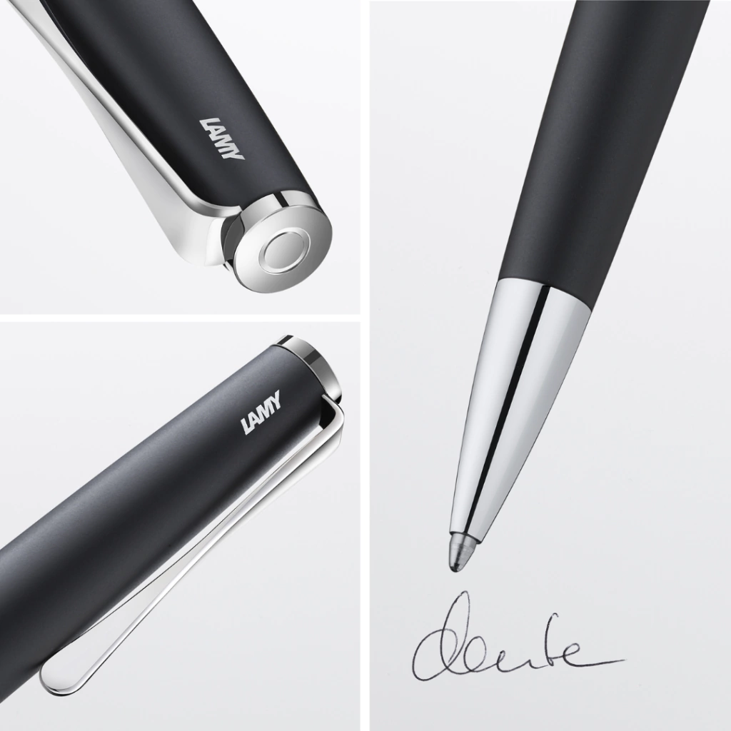 A LAMY studio convence com elegância atemporal e design universal. A forma levemente curva e esbelta do corpo totalmente em metal emerge perfeitamente das peças individuais do estojo e é deliberadamente minimalista.